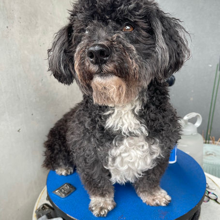 "Charlie is always happy to see the groomer now.."